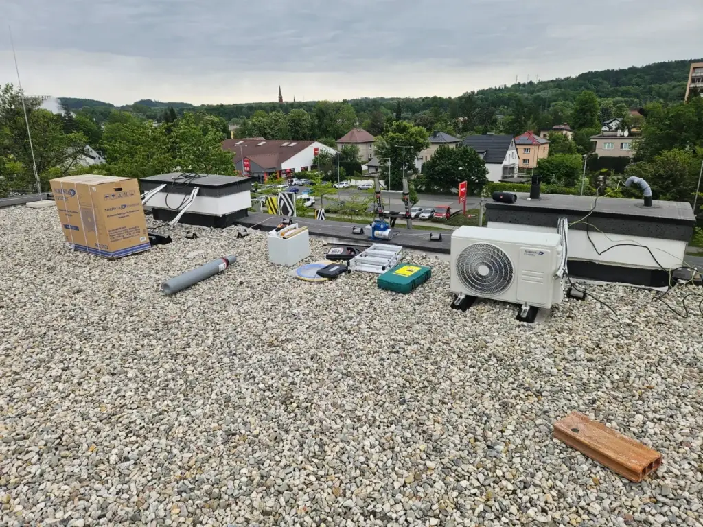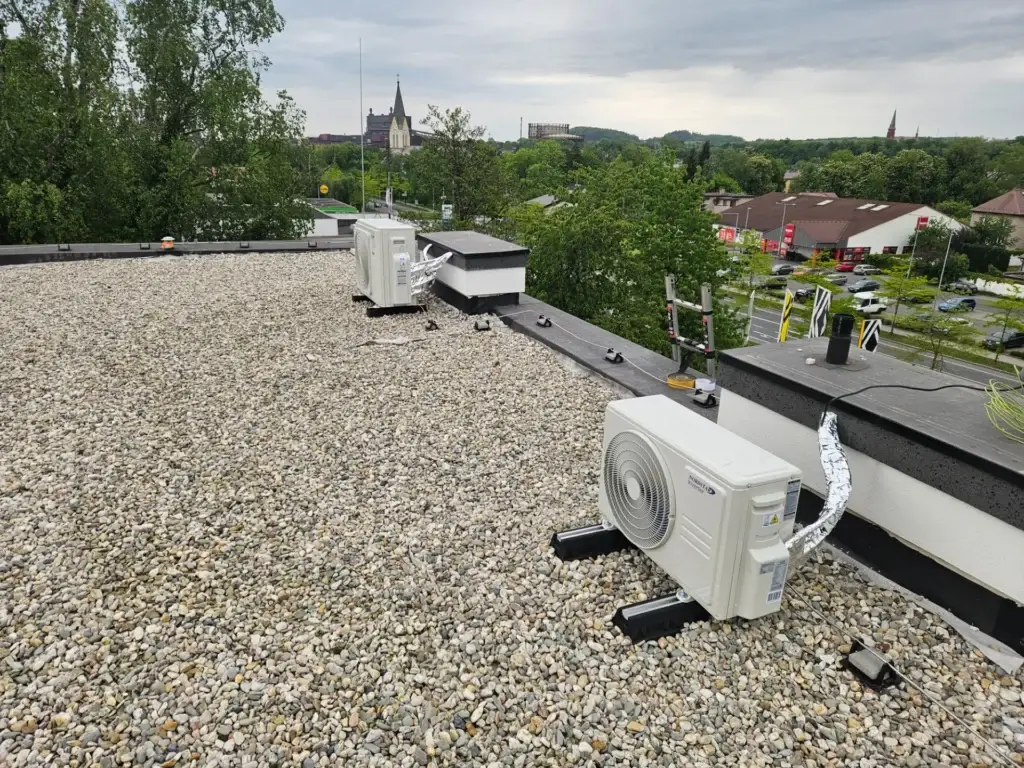 Montáž klimatizace pro klienta v komerčních prostorách Ateliéru Petit v Třinci realizovaná s cílem zajistit stabilní tepelný komfort pro zaměstnance i klienty. Instalován byl moderní nástěnný split systém, který efektivně chladí kancelářské a pracovní prostory a zároveň umožňuje úsporné vytápění v přechodném období. Venkovní jednotka byla umístěna na střeše objektu na stabilní podklad s dostatečným odvětráním a bezpečným servisním přístupem.
