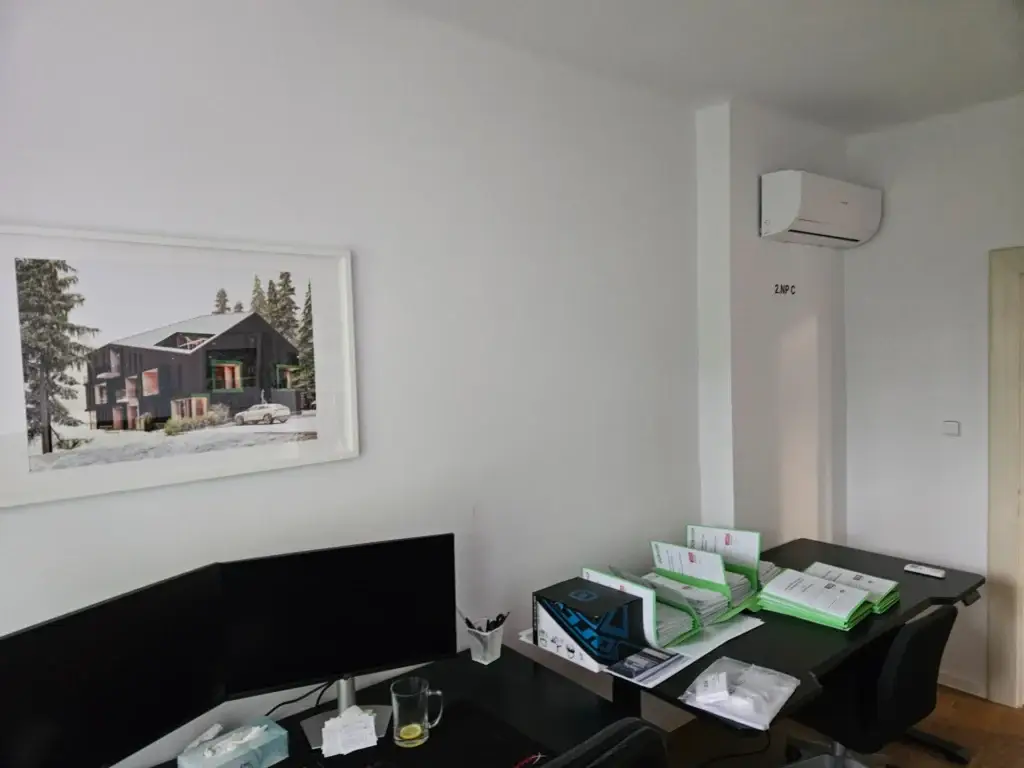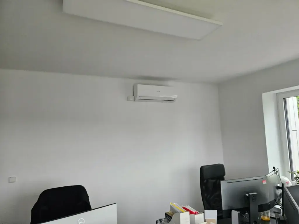 Součástí realizace byla kompletní montáž klimatizace včetně vedení chladivového potrubí, elektroinstalace, odvodu kondenzátu a profesionálního uvedení zařízení do provozu. Důraz byl kladen na estetické provedení interiérové části, minimální zásah do kancelářského prostoru a tichý chod jednotky, který je zásadní pro pracovní prostředí. Instalace proběhla s ohledem na dlouhodobou spolehlivost systému a energetickou úspornost.