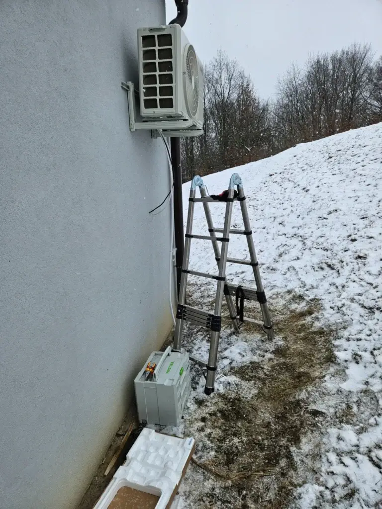 Montáž klimatizace pro klienta v Jablůnkově realizovaná na rodinném domě s důrazem na bezpečné uchycení venkovní jednotky a spolehlivý provoz i v zimních podmínkách. Venkovní jednotka byla instalována na fasádní konzoli ve zvýšené poloze tak, aby byla chráněna před sněhem, vlhkostí a nečistotami ze země. Toto řešení zároveň umožňuje lepší proudění vzduchu a dlouhodobě stabilní výkon zařízení.