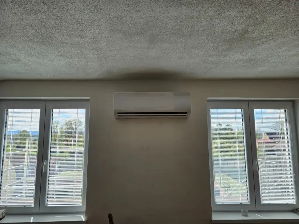 Součástí realizace byla kompletní montáž split klimatizace, propojení vnitřní a venkovní jednotky chladivovým potrubím, napojení na elektroinstalaci a vyřešení odvodu kondenzátu. Důraz byl kladen na pevné kotvení, správné vyspádování potrubí a estetické vedení rozvodů podél fasády objektu. Po dokončení montáže proběhla tlaková zkouška, vakuování systému a uvedení zařízení do provozu.